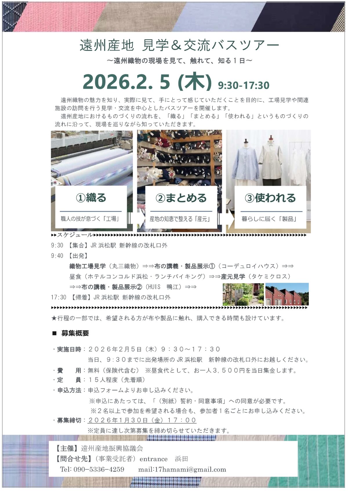 2026.01.16 イベント情報 遠州産地 見学&交流バスツアー参加者募集